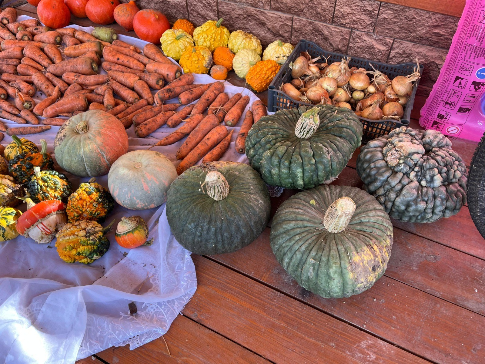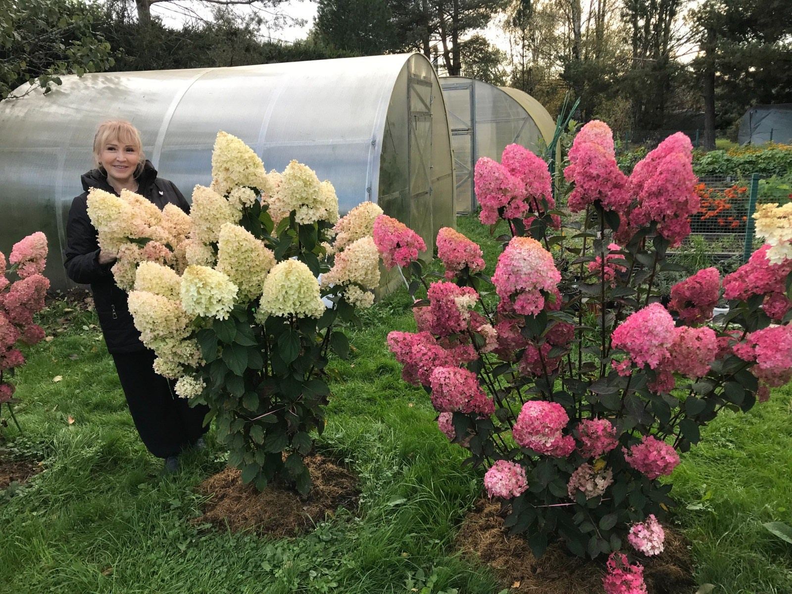 У нас есть огород и две теплицы. В огороде растет всё — зелень, овощи, корнеплоды. В теплицах — помидоры и перец. Есть клубника, смородина, крыжовник, яблоки, сортовая рябина — красная и черная.